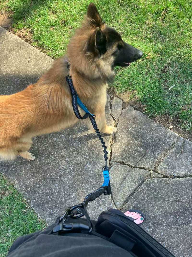 Premium hands-free dog leash with padded waist belt, dual handles & shock-absorbing bungee. Perfect for running, walking & training. 30-day...